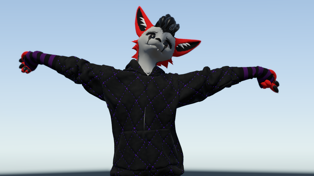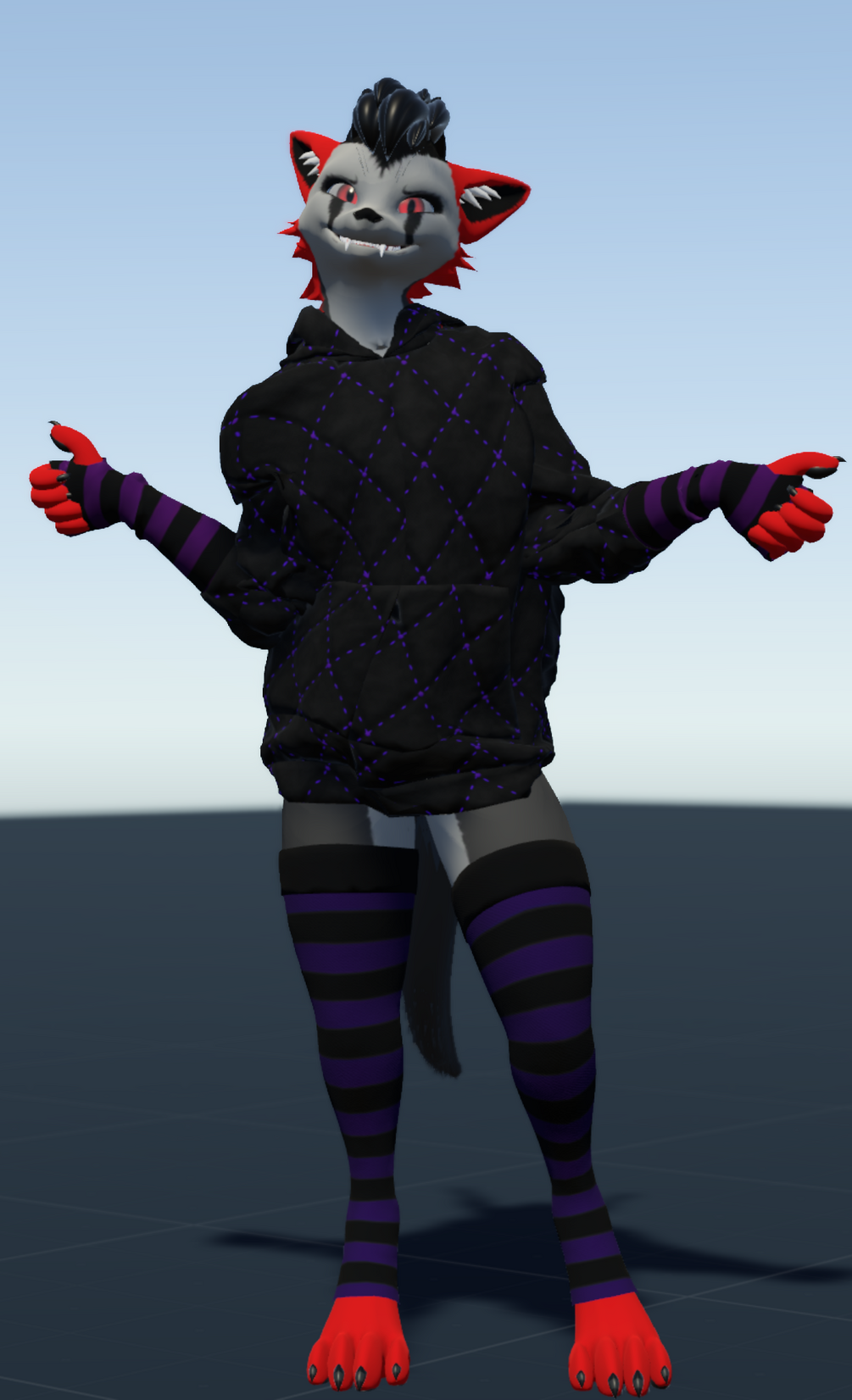 Oversized baggy zip up hoodie with matching striped arm warmers and thigh highs. female blendshapes included
