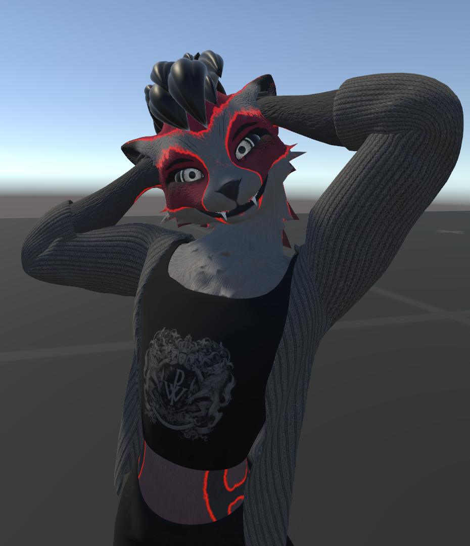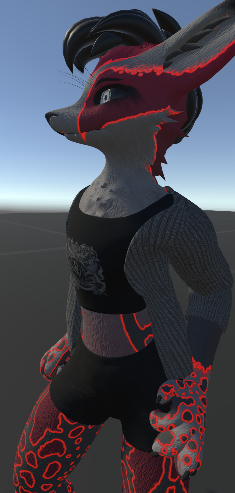 Cardigan, short-shorts and crop top custom made to fit the VRChat Rexouium avatar