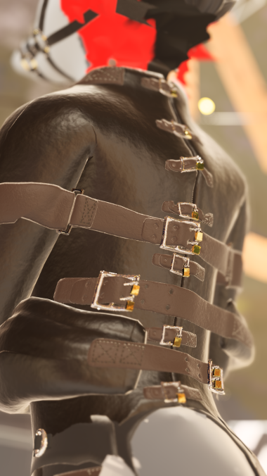 Straight jacket asset custom made to fit the Rexouium VRC avatar. BE ADVISED requires substance painter to modify avatar base texture to complete setup.