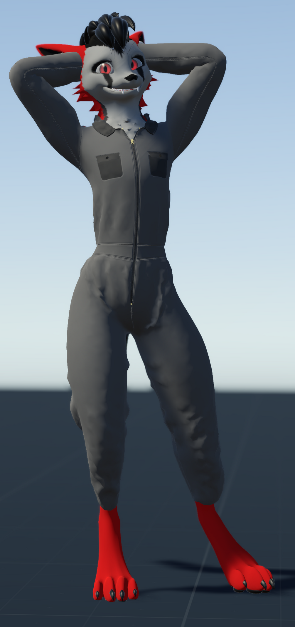 Rexouium industrial one piece jump suit with multiple textures, with female blendshapes.