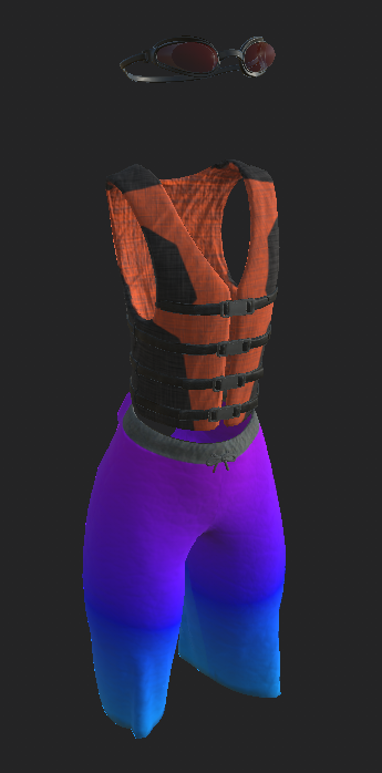 swim trunks, life jacket and goggles pre-aligned with unity scene